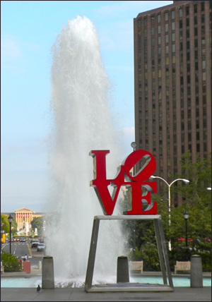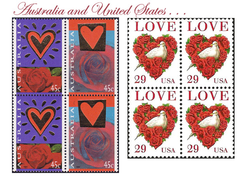 It's been 35 years since Robert Indiana's tilted LOVE sculpture helped invent the Love stamp, and they are still going strong. The concept has evolved considerably in recent years, however. In less than a decade the once-clever idea of a love stamp perforated in the shape of a heart has become old fashioned -- indeed, in the era of the self-adhesive stamp, perforations themselves have become old fashioned, as catalogs take to reporting die-cut counts instead of perforation gauges.