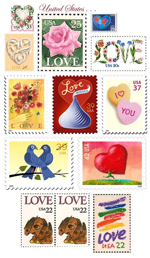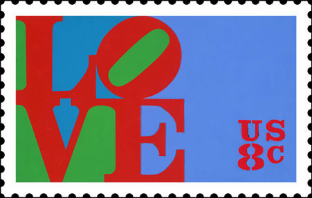 It's been 35 years since Robert Indiana's tilted LOVE sculpture helped invent the Love stamp, and they are still going strong. The concept has evolved considerably in recent years, however. In less than a decade the once-clever idea of a love stamp perforated in the shape of a heart has become old fashioned -- indeed, in the era of the self-adhesive stamp, perforations themselves have become old fashioned, as catalogs take to reporting die-cut counts instead of perforation gauges.